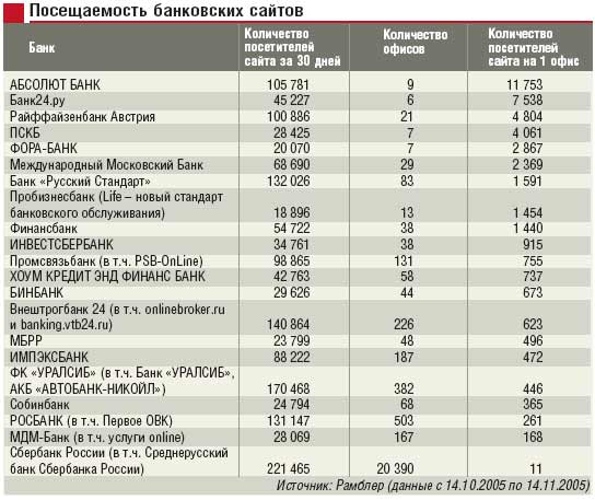 Как показывает практика, наибольшее внимание своему «виртуальному офису» и его продвижению в Интернете уделяют малофилиальные банки (см. табл.).