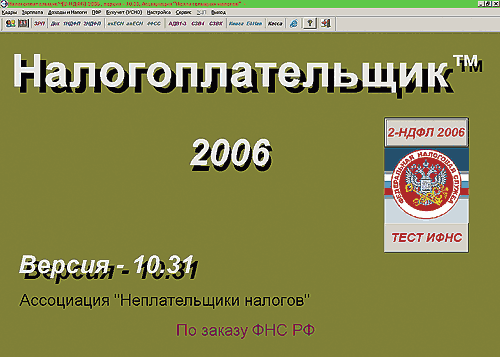 После запуска свежеустановленной программы на экране компьютера отобразится главное окно (рис. 2). На всё, что там изображено, поначалу можно не обращать внимания. Единственное, что нужно для подготовки отчётности по НДФЛ, — это две кнопки, сверху и снизу от эмблемы ФНС: 2-НДФЛ 2006 и Тест ИФНС. Первая позволяет перейти в режим формирования отчётности, а по нажатии второй проверяется то, что сформировано.