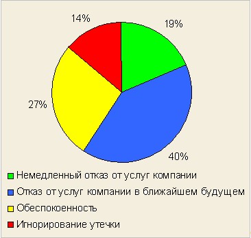В исследовании "2006 Annual Study — Cost of a Data Breach", проведенном Ponemon Institute (было опрошено 9 тыс. человек), респонденты рассказывали, как они поступили бы с провинившейся компанией. Выяснилось, что подавляющее большинство граждан (59%) либо уже отказалось от услуг ненадежной фирмы (под «провинившейся» в статье понимается компания, не обеспечивающая должного уровня ИТ-безопасности), либо собирается прервать сотрудничество в ближайшем будущем, что проиллюстрировано на рис.4.