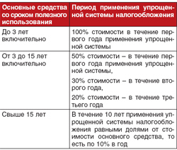 Ответ: Остаточная стоимость основных средств и нематериальных активов, приобретенных (сооруженных, изготовленных) до перехода на УСН, списывается в расходы в зависимости от срока их полезного использования, который определяется согласно Классификации основных средств8 и применяется при исчислении налога на прибыль. Остаточная стоимость определяется как разница между ценой приобретения (сооружения, изготовления, создания организацией) основных средств, нематериальных активов и суммой исчисленной по ним амортизации по правилам гл. 25 НК РФ, а также суммой амортизационной премии, установленной в учетной политике организации, но не более 10% первоначальной стоимости основных средств9.
