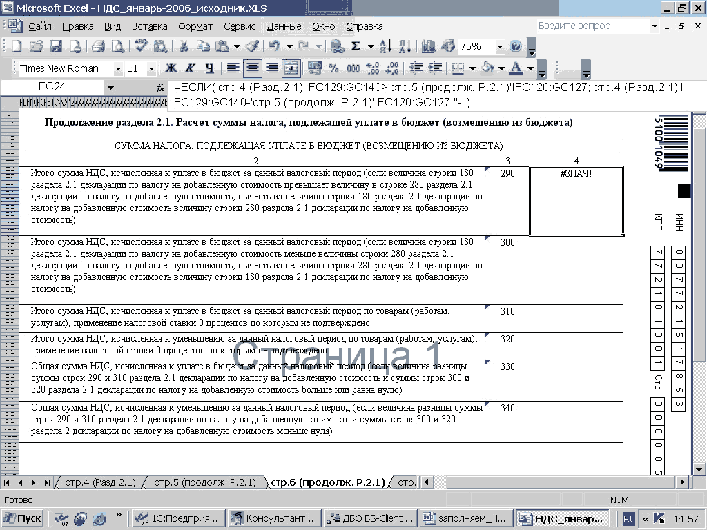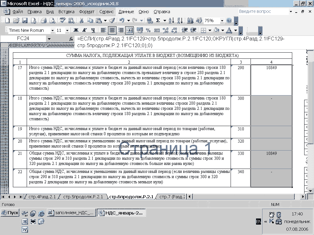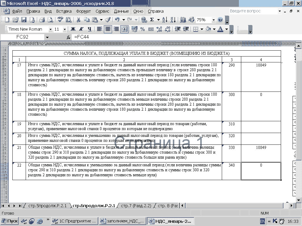 Эти же приёмы можно использовать и при заполнении других деклараций: по налогу на прибыль, на имущество, ЕСН, расчёта пенсионных взносов.