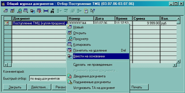 Назначение документов в меню "Размещение" интуитивно понятно по названиям.