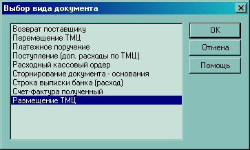 вводится документ "Размещение ТМЦ",