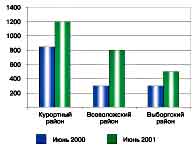 Цены на земельные участки за послед-ний год выросли на 20-50% в зависимости от района. Наиболее заметно увеличилась стоимость дорогих наделов ($400-600/сотка). Например, участки в Петродворце и Стрельне подорожали примерно в 1,5 раза, стоимость сотки в Вырице подросла в 1,3-1,4 раза, а земли во Всеволожском районе - в 1,5 раза. В категорию наиболее ходовых попадают наделы вдоль Выборгского шоссе, в Приозерском, Гатчинском и Всеволожском районах области, в Пушкинском и Петродворцовом районах Петербурга. Внутри каждой из этих престижных зон существуют свои точки "особого интереса". Так, во Всеволожском районе особенной любовью покупателей пользуются сам Всеволожск, Мельничный Ручей и Воейково. В Приозерском предпочтение отдается Токсову, Соснову и Лосеву. В Пушкинском районе котируется Александровская. В Гатчинском - Сиверская и Карташевская. А по Выборгскому шоссе на ура уходят участки, расположенные рядом с водоемами.