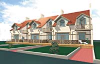 Первоначально планировалось по-строить 4 секции на 35 сблокированных коттеджей, но условия изменились (сменилась районная администрация, проект потребовал переделки и новой экспертизы). Строительство должно начаться в первой половине мая, и до конца года предполагается построить первую секцию. Площади квартир - от 166 до 230 кв.м, участки - от сотки до десяти, ориентировочная стоимость - $ 450 (без отделки).