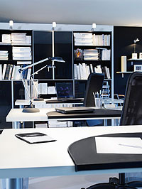 Если масштабы офиса позволяют, прекрасным решением будет организация хозяйственной комнаты для "складирования" офисных принадлежностей. Это подсобное помещение можно оборудовать модульными системами хранения. Полки размещаются на любой высоте, их можно комбинировать с проволочными или деревянными корзинами, столешницами и крючками.