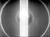 Рис.2 Иллюстрация "смаза" изображения и эффекта растекания заряда при наблюдении нити накаливания в телекамере на матрицах ПЗС фирмы SONY.