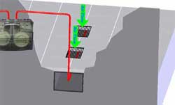 Аспирационные системы являются эффективным способом защиты кабельных сооружений (рис. 10), пространств под фальшполом, например, кабельных каналов в полу компьютерного центра, где скорость движения воздуха может быть достаточно высокой, поскольку обычно такой «двойной» пол используется для подачи охлаждающего воздуха к местам установки оборудования (рис. 11). Аспирационный способ контроля воздушной среды – постоянный принудительный отбор воздуха через систему труб значительно снижает влияние воздушных потоков в помещении.