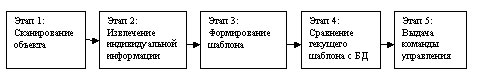 В настоящее время имеется большое количество алгоритмов и методов биометрической идентификации, отличающихся точностью, стоимостью реализации, удобством использования и т. п. Однако у всех биометрических технологий существуют общие подходы к решению задачи идентификации пользователя. Обобщенный алгоритм биометрической идентификации, характерный для всех известных БСЗИ, приведен на рис. 4.