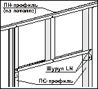 Разметить положение перегородки и дверных проемов на полу при помощи рулетки, метра и шнуроотбойного приспособления. При помощи отвеса перенести разметку на потолок. Производство этой операции значительно облегчает применение специального лазерного устройства.После раскроя на направляющие профили (ПН), предназначенные для установки на полу и потолке, а также на стоечные профили (ПС), примыкающие к стенам, наклеить уплотнительную ленту, которая служит для улучшения параметров перегородки по звукоизоляции.В соответствии с разметкой закрепить направляющие профили на полу и потолке при помощи дюбелей (в случае деревянных конструкций - шурупами). Установку крепежа производить с шагом не более 1 м. Установить и закрепить таким же образом крайние, примыкающие к стенам стоечные профили.Установить стоечные про-фили в направляющие с шагом около 603 мм и выставить вертикально. Крепление в направляющих не производить. При раскрое необходимо учитывать, что длина стойки должна быть меньше фактической высоты помещения на 10 мм.