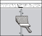 Установите дополнительные крепежные элементы возле поврежденного участка. Удалите крепежные элементы на поврежденном участке. С помощью универсального ножа обрежьте и удалите все неплотно прилегающие и (или) поврежденные части картона и гипса.С помощью шпателя шириной 15 см нанесите на поврежденный участок тонкий слой шпаклевки. Разровняйте заделанную шпаклевкой поверхность с помощью шпателя 15 или 25 см. Дайте шпаклевке застыть в течение 24-х часов. Слегка* зачистите заделанную шпаклевкой поверхность шкуркой или протрите ее влажной губкой для удаления пятен шпаклевки.Если необходимо, нанесите второй слой шпаклевки аналогично предыдущему описанию.