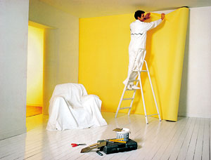 Кстати говоря, поверхность стен не будет иметь ни одного шва. Хотя стоп. Вранье. Один шов все-таки останется. Но только один. Стеновая ткань - это не какие-нибудь там обои. Обои режут на куски и наклеивают вертикальными полосами. А ткань выпускается рулонами шириной 2,60-2,95 м и длиной до 100 метров. Вы ставите такой рулон <на попа> и одним махом оборачиваете целую комнату.