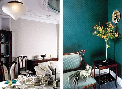 Так вот, ПО-НАСТОЯЩЕМУ стены в домах лучше всего обивать тканью. Разумеется, настоящий шелк, которым покрыты стены дворцовых залов и кабинетов вождей, вещь неописуемо дорогая. Поэтому люди попроще отделывали стены чем придется, пока в XVIII веке не придумали заменять ткань простой бумагой с печатным рисунком. Попросту говоря, обоями. Между тем пользу и приятность обитой тканью стены никакими ухищрениями цивилизации отменить, слава Богу, не удалось. Тяга к неподдельности дремлет где-то в глубинах нашего подсознания, чтобы в один чудесный момент раскрыться подобно <третьему глазу> и наполнить жизнь счастьем. Вот и генерального директора компании <МИАЛ-С>, Александра Морозова, ни советская власть, ни социалистический реализм не смогли разубедить в том, что ткань на стенах - лучшее из лучшего.