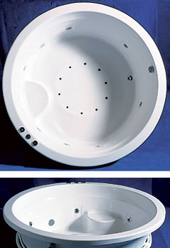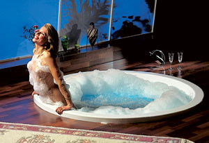 Теперь о дизайне. Форсунки сделаны из латуни и могут быть хромированными, бронзовыми и белыми. У ванн экономкласса они сделаны из пластика, причем цена сразу значительно уменьшается. При желании можно изготовить форсунки, покрытые 24-каратным золотым напылением. А еще на заказ можно сделать подсветку или <разложить> по дну светодиоды от 50 до 130 штук. В выключенном состоянии они практически не видны, но когда вы принимаете ванну, дно переливается разными цветами. Кстати, подсветка тоже будет работать только после наполнения ванны водой. Дополнительно можно установить микрофорсунки, помогающие в лечении остеохондроза и радикулита. Они имеют разное расположение: или треугольник (две вверху, одна внизу), или в два вертикальных ряда. На прямоугольных моделях их можно установить с двух сторон ванны. На ванну большого объема, где форсунок много, устанавливают дополнительный двигатель. На ванну, где предусмотрен один двигатель, обычно ставят механический переключатель, включающий либо гидромассаж, либо микрофорсунки.