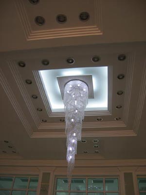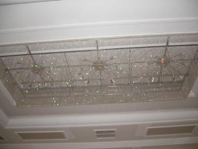 Натяжные потолки отличаются от других систем не только способом крепления, но и используемым материалом. Если основой предыдущих вариантов отделки являлись различные плиты и панели, то главная роль данной конструкции отдана полотну из полиэфирной ткани или винила. Установка происходит с помощью специального каркаса - багета, размещенного по периметру комнаты. Само крепление может производиться различными способами. Для виниловой или ПВХ пленки чаще применяется вариант с использованием "гарпуна" - специальной планки, приваренной по периметру полотна. Свойства ПВХ материала диктуют еще одну особенность монтажа - необходимость разогрева воздуха в помещении до температуры 60-70оС. Но даже этот дополнительный этап не мешает занимать натяжному потолку лидирующие позиции по чистоте и скорости установки. Ведь производить работы можно даже после окончания ремонта - не передвигая мебели в комнате. Использование пленки из винила расширяет не только выбор текстуры отделки, но и возможность с легкостью организовывать такие необычные модели, как арочные, угловые, футуристические - многогранные, разноуровневые. Цвет и стиль не ограничен имитацией материала, технология позволяет наносить с помощью печати любой задуманный рисунок. Такой широкий диапазон декора, дополняет возможность использования различного вида светильников, включая хрустальные рассеиватели света и оптоволоконное световое оформление. Важное качество этого вида потолочных покрытий - их антистатичность, которая препятствует оседанию пыли, облегчая уход.