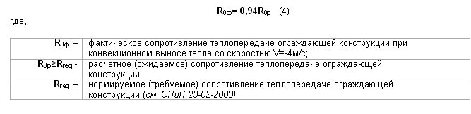 - при уровне снижения сопротивления теплопередаче ограждающих конструкций на 60% за счёт конвекционного выноса тепла расходы на теплоснабжение могут повышаться до 40%;