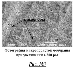 Позднее появились микропористые мембраны (тип б). В них выход водяного пара происходит из микропор значительно меньших размеров, чем микроотверстия (см. Рис. №3).