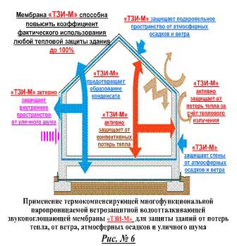 Опыт применения показал, что "ТЗИ-М"® - единственная строительная мембрана, способная за счёт собственного термического сопротивления восполнить неизбежные потери теплозащитных свойств ограждающей конструкцией.