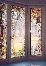 В-третьих, узоры и картины из цветного стекла получаются объемными (выпуклыми или вогнутыми), наполненными светом и воздухом, что придает изделиям неповторимость. Солнечные лучи, преломляясь, заставляют стекло гореть яркими сочными красками, делая витраж всякий раз новым и неповторимым.