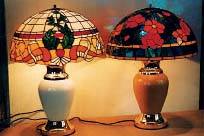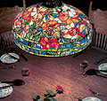 Кроме того, появляются и декоративные новшества. Например, абажуры с геометрическим орнаментом (небывалое явление для стиля "тиффани", возникшего на почве изысканного и вычурного ар-нуво). Появились и небольшие светильники в виде фигурок животных. Есть модели, в которых рисунок является лишь обрамлением, а большая часть абажура остается одноцветной (еще одно явное отступление от стиля). Подобные модели могут стоить от $ 200 (что уже приемлемо) и выше (верхнюю планку, как вы понимаете, не всегда возможно обозначить).
