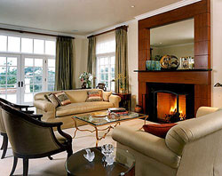 Шло время, менялась мода, появлялись новые стили, но стекло уже не сдавало своих позиций, органично вписываясь практически во все из них. Так, например, возвращение классики ознаменовалось появлением натурального дерева, его рисунок и структура стали украшением мебели. А сочетание благородной древесины с деталями из стекла – самым популярным сочетанием материалов в современной классике. Именно благодаря прозрачному и «невесомому» стеклу, мебель и детали интерьера приобретали легкость, а вся обстановка – ощущение насыщенности воздухом и простора. От пола до потолка окна, стеклянные двери, экраны каминов, большие, встроенные в стену зеркала, светильники и столешницы из стекла – все это в сочетании с натурального цвета деревом и светлыми стенами уже непременные атрибуты интерьера в стиле современной классики.