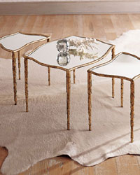 Интерес дизайнеров к историческим интерьерам и создание на их основе мебели, использующей технологии нашего времени, привели к появлению предметов, как будто бы антикварных, но одновременно и узнаваемо современных. Такой вот изящный столик на бронзовых ножках-веточках мог бы стоять в интерьере и два-три столетия назад, но в его авангардной форме и нарочито необработанной поверхность металла угадывается произведение дизайнера наших дней. А модные сейчас ковры из натурального меха, формой повторяющие шкуры, дополняют общее впечатление.