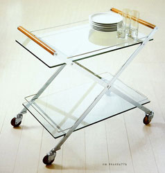 В конце пятидесятых – начале шестидесятых годов вновь возвращается интерес к мебели простых геометрических конструкций, стеклу и пластику в интерьере. Появляются и сразу приобретают популярность маленькие стеклянные столики, круглые, прямоугольные и квадратные столешницы которых опирались на тонкие деревянные или железные ножки. С виду хрупкая и неустойчивая эта мебель, на самом деле оказалась довольно практичной и прижилась на многие десятилетия, найдя своих почитателей.