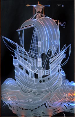 Лазер - источник электромагнитного светового излучения видимого, инфракрасного или ультрафиолетового диапазонов, работа которого основана на вынужденном когерентном излучении атомов и молекул. Исключительно высокая эффективная температура лазерного излучения и возможность концентрировать энергию в ничтожно малом объеме открыли уникальные возможности применения лазеров в рамках различных технологий. Вполне закономерным стало их использование и в процессах резки, сверления, а также декорирования стекла. С помощью лазера можно создавать не только плоские изображения на поверхности, но и двух или трехмерные изображения в массе стекла. Метод лазерного гравирования основан на воспроизведении штриховых и полутоновых изображений путем прямого воздействия сфокусированного лазерного излучения на обрабатываемое изделие. Одним из основных преимуществ технологии лазерного гравирования перед другими методами является отсутствие напряжения в стекле после обработки.
