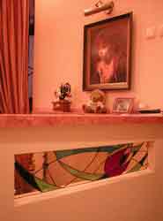 Стекла изготовленные методом фьюзинга всегда оригинальны и разнообразны в применении. Их можно использовать в качестве отдельных элементов интерьера в окнах и дверях, корпусной и встроенной мебели, светильниках, перегородках, а также при декорировании кафельной плитки стеклоблоков, зеркал и.т.д.