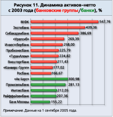 Для сравнения темпов роста банков в стадии интеграции с темпами роста банков, развивающихся собственными силами, мы произвели следующие расчеты (рис. 11).