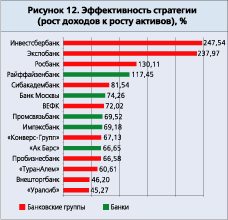 Фактически стратегия тех банков, которые развивались постепенно, поступательно расширяли собственную филиальную сеть и не увлекались поглощениями, — не менее эффективна, но менее рискованна (рис. 12).