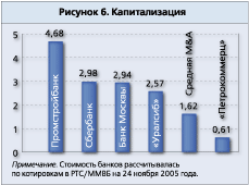 Любопытно сравнить стоимость банков с рыночной капитализацией и стоимость банков на рынке M&A (рис. 6).