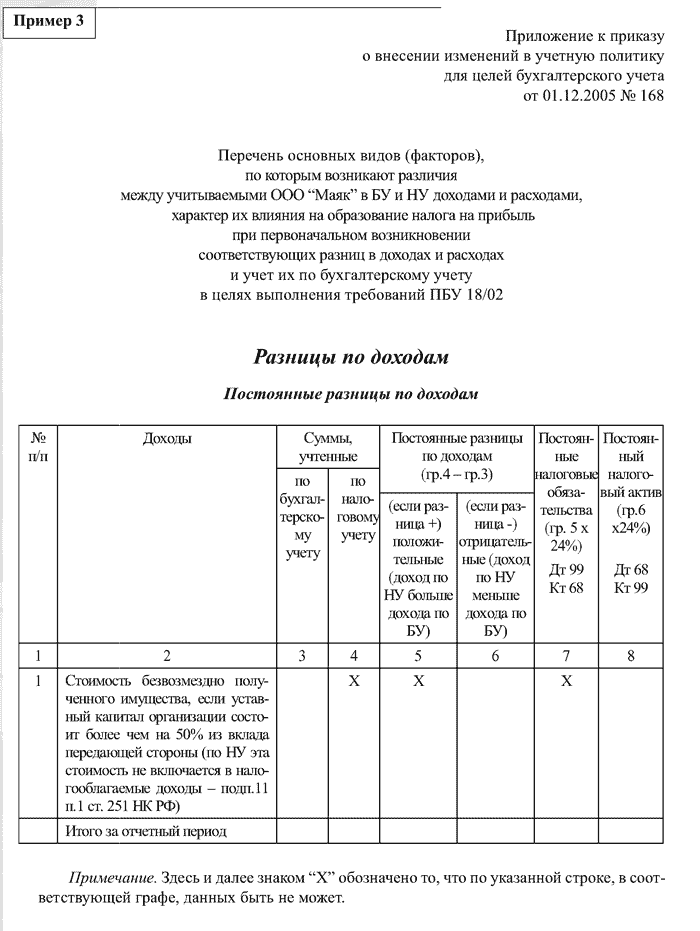 Федеральным законом от 06.06.2005 № 58-ФЗ были внесены значительные изменения в главу 25 «Налог на прибыль организаций» НК РФ, которые также напрямую не затрагивают порядок ведения бухгалтерского учета, но в то же время меняют порядок определения доходов и расходов в целях определения налога на прибыль, и таким образом влияют на различия между учитываемыми в бухгалтерском и налоговом учете доходами и расходами. Следовательно, эти поправки меняют порядок учета налоговых разниц, активов и обязательств в целях бухгалтерского учета в рамках выполнения требований ПБУ 18/02.