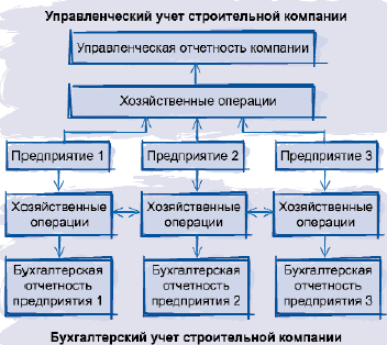 Так как компания представляет собой холдинговую структуру, в которойнесколько предприятий (юридических лиц) оказывают различные подрядныеработы для головного предприятия-застройщика, на первом этапе работбыла разработана и внедрена единая методология управленческого учета,ведущегося параллельно с бухгалтерским. Это позволило вести учет иполучать отчетность по всем предприятиям, входящим в компанию,рассматривая их как единый бизнес (рис. 1).