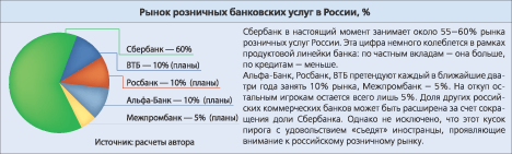 В России своя специфика банковской розницы, учитывая которую иностранцы сейчас предпочитают становиться акционерами уже действующих банков, а не создавать «дочку» с нуля. Некоторые аналитики считают, что именно в расчете на такую модель построения розничного бизнеса западных банков, российские кредитные организации выделяют ритейл в самостоятельное направление с целью дальнейшей продажи иностранным коллегам. И расчет здесь абсолютно верный, ведь приобрести существующий банк значительно дешевле, чем создать его и развить филиальную сеть с нуля. Подтверждением готовности иностранцев покупать российские банки могут служить такие примеры, как покупка итальянским Banca Intesa контрольного пакета акций КМБ-Банка (ЗАО), объявление о планах Deutsсhe Bank купить долю в крупном российском розничном банке, приобретение GE Consumer Finance (GECF) ДельтаБанка, покупка группой «Сосьете Женераль» банка «ДельтаКредит» и т.д.