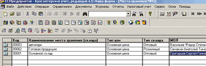 Другой справочник, при заполнении которого ошибки встречаются довольно часто, - это “Места хранения МПЗ” (рис. 2).