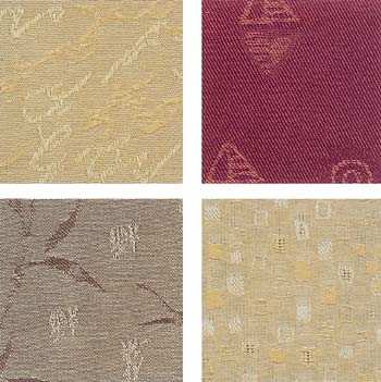 Ткань ламелей бывает разной по плотности, цвету, фактуре. На фото: образцы тканей с жаккардовым переплетением