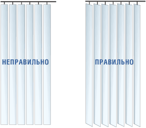 Положение ламелей при закрывании-открывании жалюзи. При <правильном> варианте ламель должна находиться перпендикулярно окну