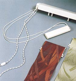 То же самое относится и к цепочке управления, которая свисает сбоку карниза и поворачивает ламели на 180°. Эти цепочки тоже в основном пластиковые (хотя раньше их делали и из металла).