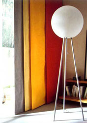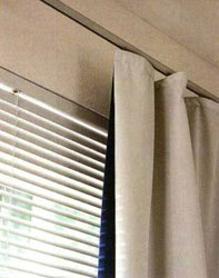 Почему, собственно, окно принято занавешивать какой-нибудь одной тканью, максимум двумя? А если использовать сразу четыре? На нашей картинке шторы состоят именно из четырех слоев ткани (или из восьми парных полотен) высотой от пола до потолка. Три слоя - хлопчатобумажные, светлые, хорошо сочетающиеся друг с другом по цвету. Четвертый, дальний слой - из плотной светонепроницаемой серой ткани. Ею большое окно и балконную дверь закрывают только на ночь - чтобы полностью затемнить комнату. Карниз оснащен четырьмя штангами. Шторы крепятся к ним с помощью двусторонней "липучки". Чтобы полотна висели ровно и не колебались от ветра или сквозняка, сквозь нижнюю кулиску продернуты алюминиевые рейки.