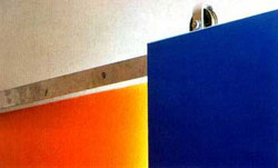 Истинная элегантность. Похожее, но более элегантное решение: здесь использована готовая крепежная система на основе U-образной направляющей. В любом случае панель должна быть хотя бы на 5 см больше оконного проема. На такой "занавеске" неплохо смотрятся картинки и фотографии. Чтобы их закрепить, берут ДВП потолще - уже не 16-, а 19-миллиметровую - и делают в ней поперечные прорези, в которые вставляют Т-образные алюминиевые профили. По этому же принципу изготовлено изголовье кровати.