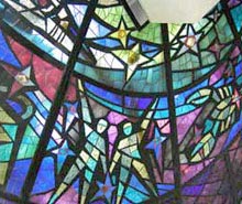 Большие витражные окна очень эффектно смотрятся в залах, спальнях или детских комнатах. Свет, прошедший через разноцветные участки картины, создает удивительное ощущение радуги в доме. Однако качественно выполненный витраж стоит немалых денег, а, приплюсовав к ним стоимость окна большой площади, в качестве результата вы получите весьма впечатляющую сумму.