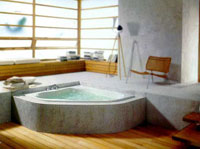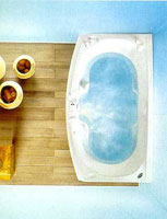А для любителей пообщаться-поболтать, сидя в теплой воде, фирма JACUZZI сделала модель Fiore. В этой небольшой угловой полусидячей ванне (167х167 см, глубина 67 см) спинки расположены рядом. Можно общаться, сидя в воде и попивая кофе - вроде водной гостиной.