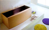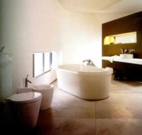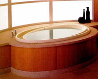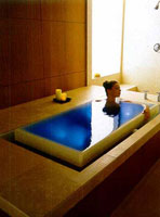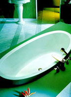 Вообще же ванны стали появляться в свете "семействами". Похожие конфигурации ванн выпускаются под одним именем, но при общем сходстве отличаются размерами и деталями очертаний: чуть выше или ниже, чуть круглее или квадратней, чуть шире или уже. Или, например, предлагаются коллекции ванн для семейных домов, где все делается с размахом и на перспективу, для обитателей дома самого разного роста и возраста. Для солидного мужчина - ванна повместительнее. Для младенцев - круглая, как купель, глубиной всего 44 см при диаметре 180 см, напоминает чашечку цветка.