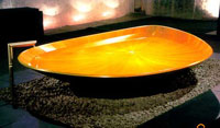 Здесь нельзя не повторить, что таким богатством выбора потребитель обязан современным материалам и технологиям, применяемым сегодня в производстве ванн. Мы уже писали об основных из них. Именно они дают возможность создавать такие геометрические конфигурации, какие Пифагору не снились: с выемкой в области ног, с закруглением в области головы, с дном, повторяющим изгибы тела, другие "капризные" формы. Недавно на одной из выставок стала сенсацией стеклянная ванна в виде цветка.
