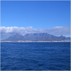 Одетая белоснежными облаками, над живописным Кейптауном (ЮАР) возвышается Столовая Гора. Если смотреть на нее снизу, из бухты, кажется, что у нее совершенно плоская вершина, протянувшаяся на 3,2 км от одного конца до другого. Крутые горные склоны поднимаются над морем на более чем на тысячу метров. Из кейптаунской гавани гора видится грандиозным сине-зеленым монолитом, в жару слегка дрожащим в дымке марева, а со стороны Атлантики ломающий линию горизонта уступ из песчаника известен под именем Двенадцать Апостолов. Облачная «скатерть» ложится на вершину Столовой Горы, но никогда не опускается до ее нижних склонов. На вершине облака могут собраться неожиданно, делая погоду там совершенно непредсказуемой: если в самом Кейптауне в год выпадает 650 мм осадков, то на Столовой Горе их количество может достигать 1 830 мм в год. От вида, открывающегося со Столовой Горы в ясный день, захватывает дух. Два великих океана встречаются у оконечности Южной Африки: Атлантический и Индийский. Встреча холодных южных течений с более теплыми водами Индийского океана вызывают мощнейшие штормы, будоражащие море вокруг мыса Доброй Надежды. Столовую гору можно увидеть из любой точки Кейптауна, но удобнее всего до нее доехать на такси из центра города. На вершину уникальной горы можно подняться по канатной дороге.