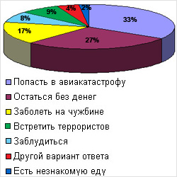 опрошенных. После серии терактов прошлых лет в Египте и Турции турпоток из России в эти страны если и уменьшился, то незначительно и ненадолго. Отважные российские туристы готовы идти на риск, если уже успели заплатить за путевку.