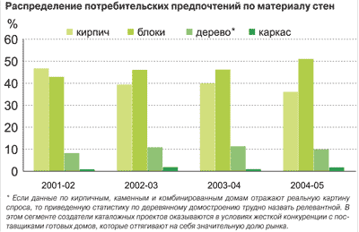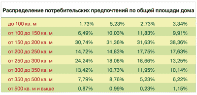 Предлагаемые нами данные и методы призваны восполнить ряд пробелов в картине потребительских предпочтений. В основу выборки легли не привычные для аналитиков данные по продажам объектов, а статистика, связанная с продажей потребителям проектов, приобретаемых, чтобы строить дома. При этом средняя рыночная стоимость комплекта проектной документации, представленной, к примеру, в издании «Каталог проектов», составляет 250–800 евро. То есть человек, выложивший немалую сумму за набор чертежей, очевидно, должен иметь серьезные намерения, связанные со строительством дома: можно с уверенностью сказать, что это реальный потребитель, который по социальному статусу и материальному положению близок к целевой группе обитателей коттеджных поселков. Выбирая проект из тысяч представленных в банке данных, он в конечном итоге «голосует» за те или иные площади, материалы, планировочные особенности, архитектурное решение. Кроме того, в отличие от готовых объектов, объемы продаж готовых проектов исчисляются не десятками, а сотнями в месяц и тысячами в год. А это уже серьезный материал для аналитических исследований, позволяющий «нарисовать» не только статичную картину предпочтений, но и установить, как они меняются. А это чрезвычайно важно для составления прогнозов, ибо помогает определить, «куда мы движемся».