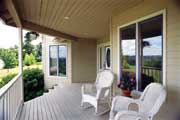 Ну вот, от небольшого исторического экскурса, разогревающего воображение и пробуждающего творческую фантазию, мы незаметно перешли к теме сугубо прикладной - строительству и последующему оборудованию веранды. Тут есть свои определенные принципы. Веранду располагают вдоль главного или торцевого фасадов дома так, чтобы внутри оказалась дверь, через которую можно попасть на веранду из основных помещений. Из каких конкретно - решать вам. Может быть, из гостиной, если вы хотите сделать веранду своего рода продолжением «большого зала» вашего дома, а может быть - из столовой: отобедали за общим столом, а за десертом пожалуйте на веранду. В общем, кому что ближе. А вот входную дверь на веранду с улицы можно сделать с любой удобной вам стороны. Особенно красиво смотрится частично остекленная дверь.