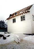 Попробуйте в наше время быстро и качественно возвести дом из кирпича - наверняка и с хорошим материалом будут проблемы, и с хорошими каменщиками. А какие затраты материала! Чтобы не замерзнуть, вы должны выстроить толстую кирпичную или бетонную стену, в то время как технология "Теплый дом" при аналогичных теплосберегающих характеристиках позволяет уменьшить ее толщину в несколько раз (в 8 раз в сравнении с железобетоном, в 6 - с кирпичом и в 2 раза - с деревянной стеной). Не будем также забывать, что толстые стены "крадут" внутреннюю площадь дома, и если здание большое, то это весьма ощутимо.